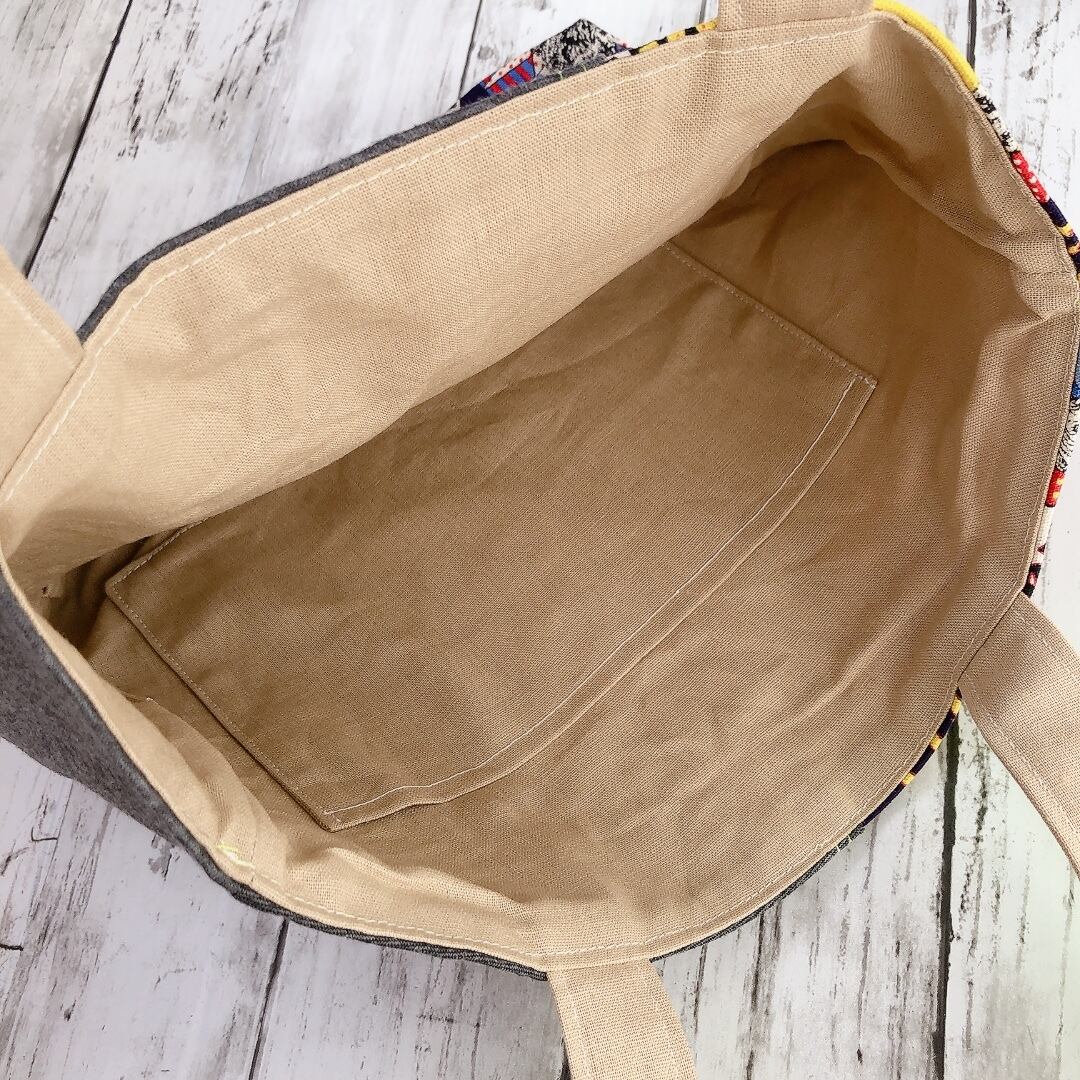 持ち手や内生地などで一部新品生地を使用しておりますが、あくまで古着のリメイク品ですので、既製品の様な仕上がり・新品をお求めの方はご購入をお控えください。