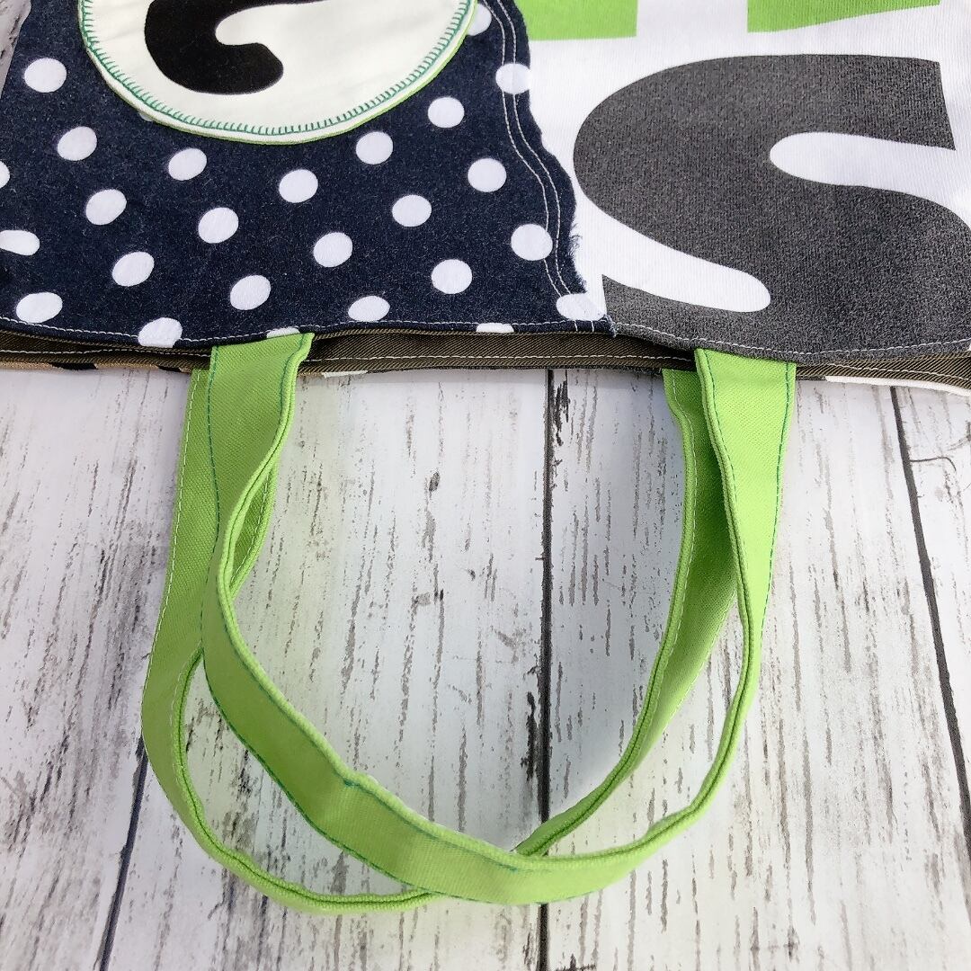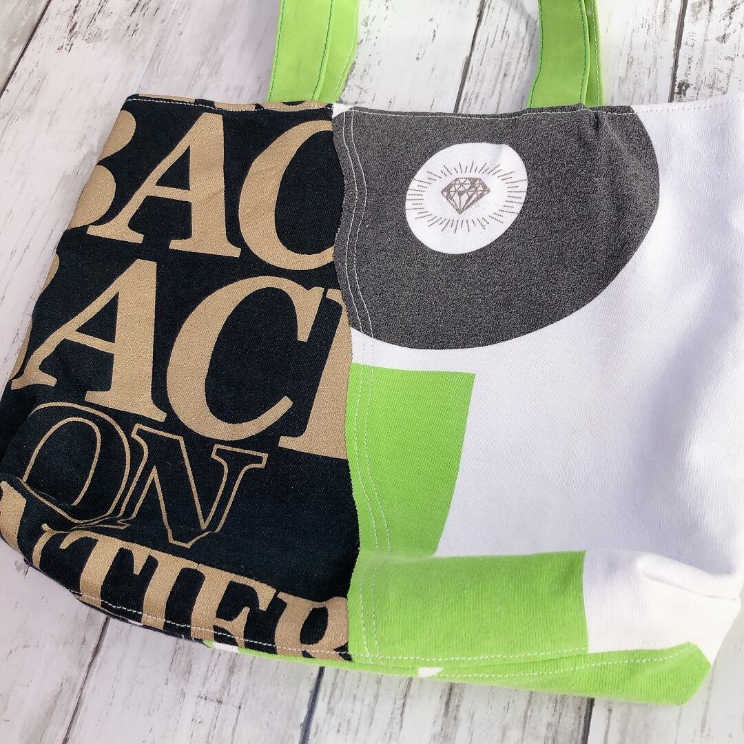 Tシャツをリメイクして作った表裏のデザインが違うオシャレなトートバッグです。